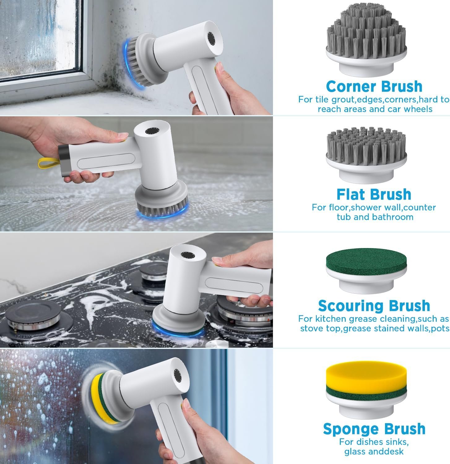Electric Spin Scrubber 5-in-1 USB Rechargeable Kitchen Bathtub Tile Cleaning Dishwashing Brush